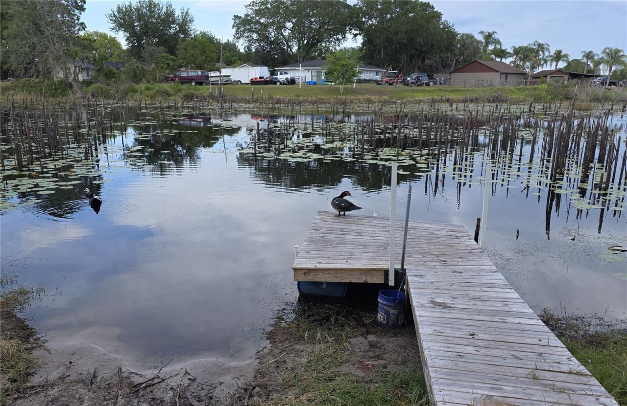 LAKEFRONT RETREAT ON OVERSIZED HALF-ACRE LOT! Experience the ultimate Florida lifestyle in this stunning 3-bedroom, 2-bathroom lakefront home nestled on a rare 0.51-acre lot. This property offers the perfect blend of tranquility and modern comfort with direct access to Dupont Lake.Enjoy your mornings on the floating wood dock, perfect for fishing or launching a kayak, or relax in the massive screened and covered patio (28'x15') which provides panoramic water views from the master suite, dining area, and kitchen. The huge backyard is a private oasis with plenty of room for gardening, play, or future expansions.Peace of Mind Included: The sellers are providing a brand-new shingle roof to be installed prior to closing and interior walls repainted!Interior Highlights: Chef's Kitchen: Features stylish grey shaker cabinets, sleek glass backsplash, stainless steel appliances, and a built-in study/work desk. Master Suite: Offers breathtaking lake views and his and her closets for ample storage. Upgraded Bathrooms: Modern finishes including dual sinks. Flooring: Durable tile throughout for easy maintenance.Exterior & Utilities: No HOA: Bring your boat, RV, or trailer-no restrictive dues or rules! Storage: Includes an 8x8 outdoor storage shed and a workshop area in the garage.