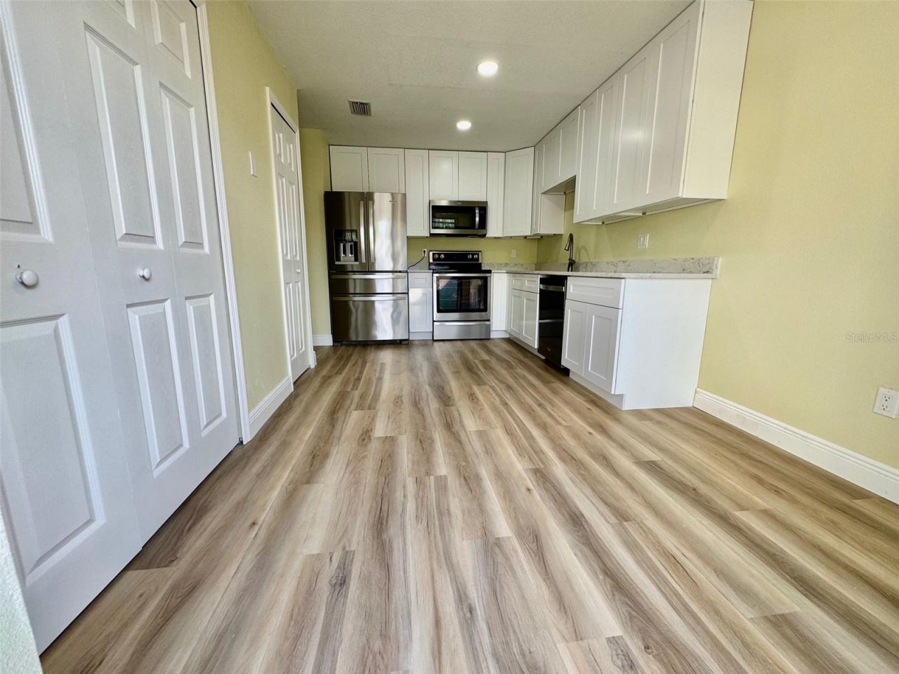 Discover comfort and convenience in this charming, spacious 2-bedroom, 2-bath residence nestled in the heart of Winter Park! Step inside to an inviting living room with a vaulted ceiling. The fully equipped open-floor kitchen, featuring ample roomy cabinets, is perfect for everyday living and entertaining. The thoughtfully designed split floor plan enhances functionality and privacy. Elegant, durable flooring throughout the home ensures easy maintenance. Enjoy the walk-in shower and bathtub with upgraded plumbing and tile. A convenient coffee nook sits just off the kitchen. The spacious patio is ideal for entertaining guests and enjoying outdoor time. Community amenities include a swimming pool and tennis courts, supporting a low-maintenance, active lifestyle.