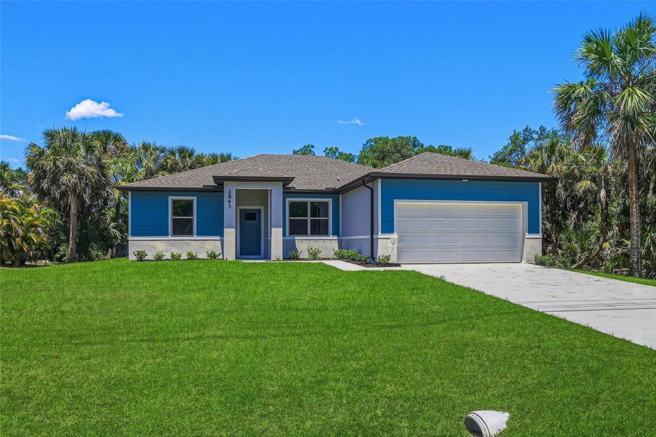 Here it is! A new construction home with CITY WATER in North Port and no HOA! This affordable new home is ready now! This is just the one you've been looking for. The Acosta floor plan has a great layout with an open and versatile floor plan. The home features 4 bedrooms, 2 full bathrooms, a formal dining room, a living room, an open kitchen, and a 2-car garage with 1,810 square feet of living space. The living space is well utilized, with ample room for large households. The high ceilings and interior features will give you the quality and luxury you were looking for in your new home. This home has a split layout with the primary suite on one end and the guest bedrooms on the other. The Primary bedroom has a tray ceiling and large windows that bring in natural light, plus a resort-style primary bathroom with a walk in shower, double vanity, and a large walk-in closet. The living room also receives plenty of natural light and has access to the covered lanai. The great room is open to the kitchen, where you'll find a large center island for casual meals. The kitchen features stainless steel appliances, Shaker-style cabinets with crown molding, and granite countertops. The dining room is at the front of the home, with a nice size window providing even more natural light. The home includes luxury vinyl flooring throughout for durability and comfort. You'll love these floors-easy to maintain and a trending design element in new homes. Other features include Shaker-style cabinets with hardware and granite countertops in the bathroom, tiled walls in the owner's shower, and a tiled shower floor, a garage door opener, R38 insulation, 16 SEER AC unit and more. Take advantage of the seller's warranty when purchasing this home. Check out any of our other homes under construction. We have a variety of locations and color schemes for you to choose from.